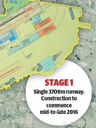 (三)第一期工程:面积20平方公里的悉尼第二机场已经确定于2016年内开工,第一期工程2023年完工,届时将拥有一条长达3.7公里的跑道。一期工程2024-2025年间正式启用。