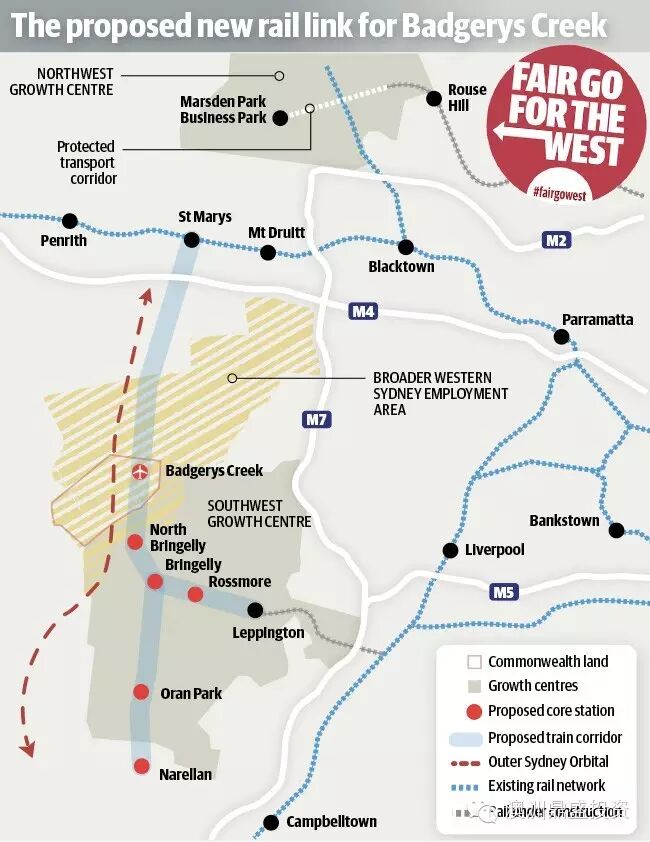 4、BadgerysCreek机场配套铁路(见本帖前述)将通过这个TownCentre,位置就OranPark Podium超市东侧街道对面。