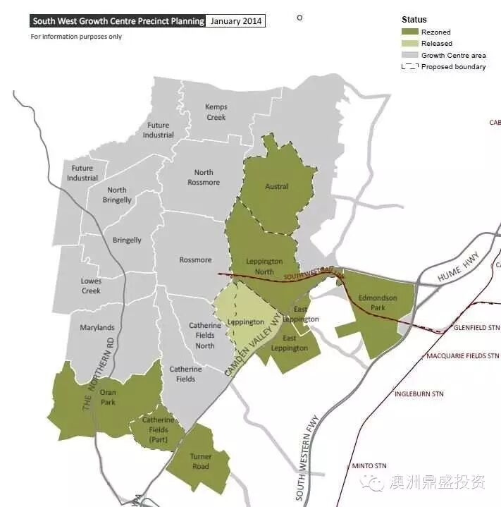 (一)Austral和LeppingtonNorth片区规划,包括Austral区和Leppington区最靠近机场和最核心的区域。专家近日预测:2016年度在悉尼400多个区里,Leppington区的住宅增幅将最高。理由如下: