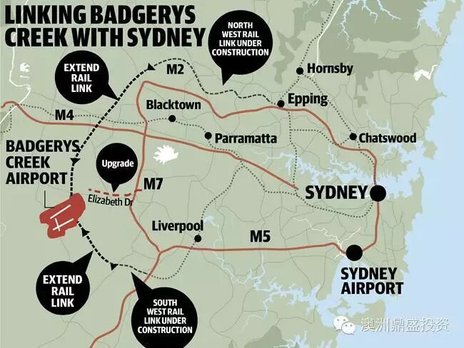 (一)2014年4月,政府宣布第二机场(国营)选址确定在Badgerys Creek(政府在1986年左右开始为机场和配套的铁路和公路购买和预留土地)。